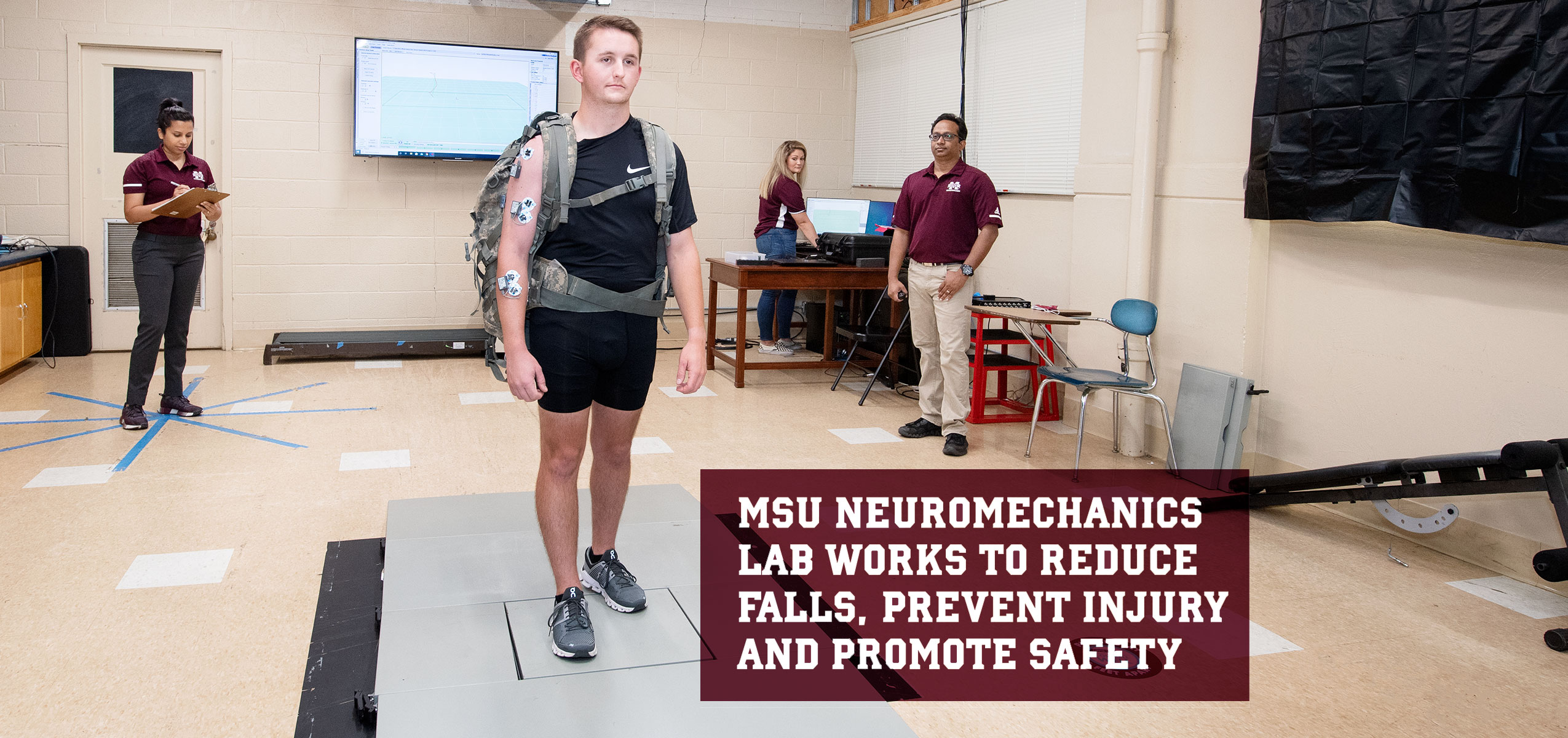 When a person slips or falls, some broad details of what caused the incident are immediately known, like whether the surface was slick or a step was missed. It’s the small details of what happens before and during a fall that interest MSU Neuromechanics Laboratory researchers. To have a comprehensive analysis, they use a 3D motion capture system. It’s the same concept used by Hollywood studios to bring action heroes to life in movies like “The Avengers.” While the studios animate the captured movement for cinematic feats, researchers at Mississippi State use their recorded images to study how the body responds to different environments and falls.